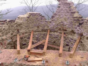 Szögliget – Szádvár déli csonka bástya K-i oldalának állagmegóvási munkálatai.
